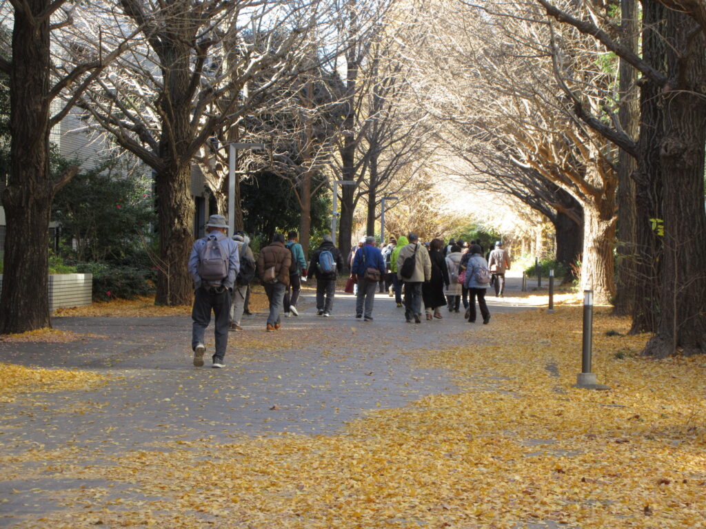 昼食後は、イチョウの葉のじゅうたんを踏みながら西門へ向かいます。