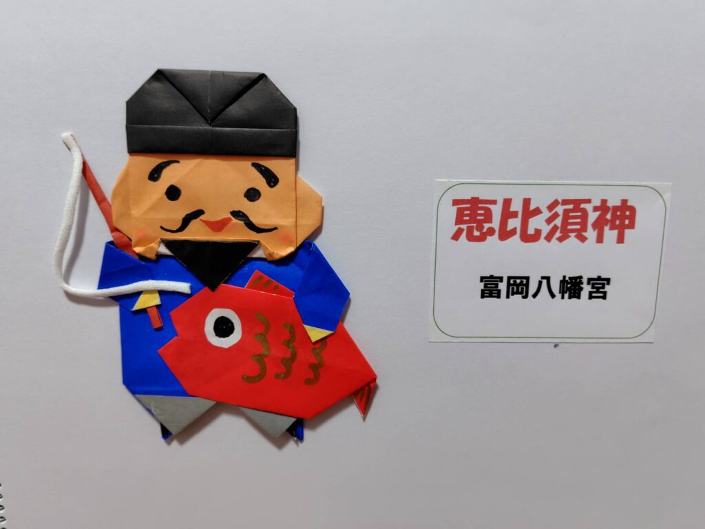 恵比須神は日本の神様で、烏帽子をかぶり、狩衣を着て、右手に釣り竿を持ち左手に鯛を抱えています。
