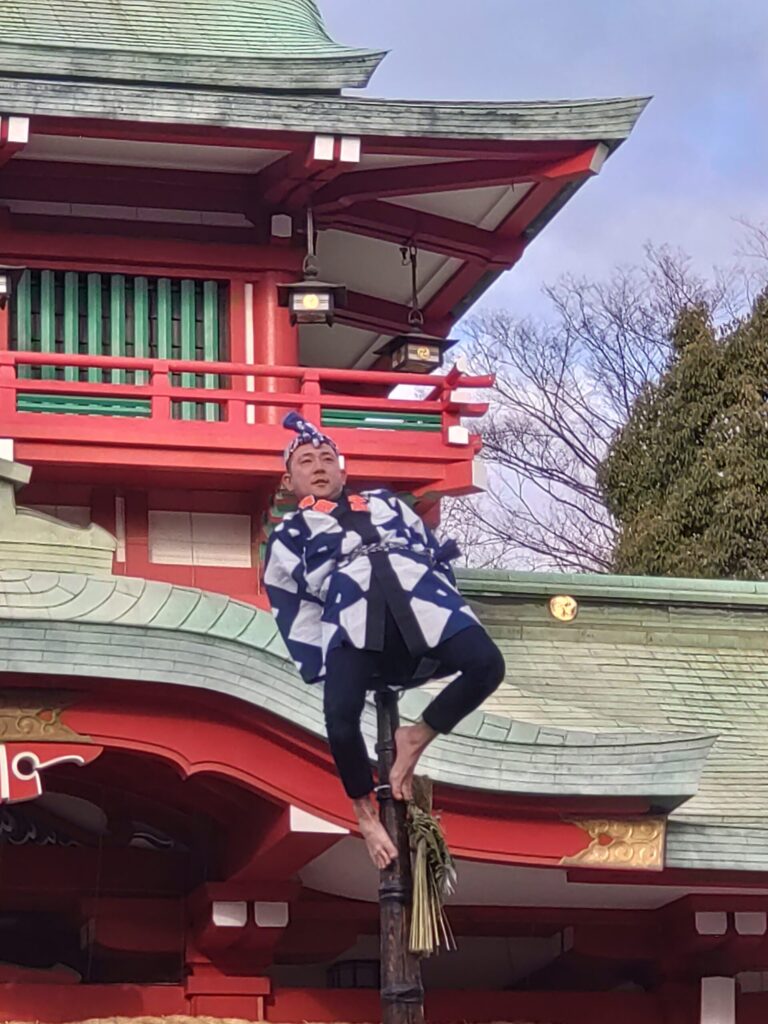 富岡八幡宮では、運良く、出初式の「さすまた乗り」「まとい振り」の奉納に立ち合う事ができました。